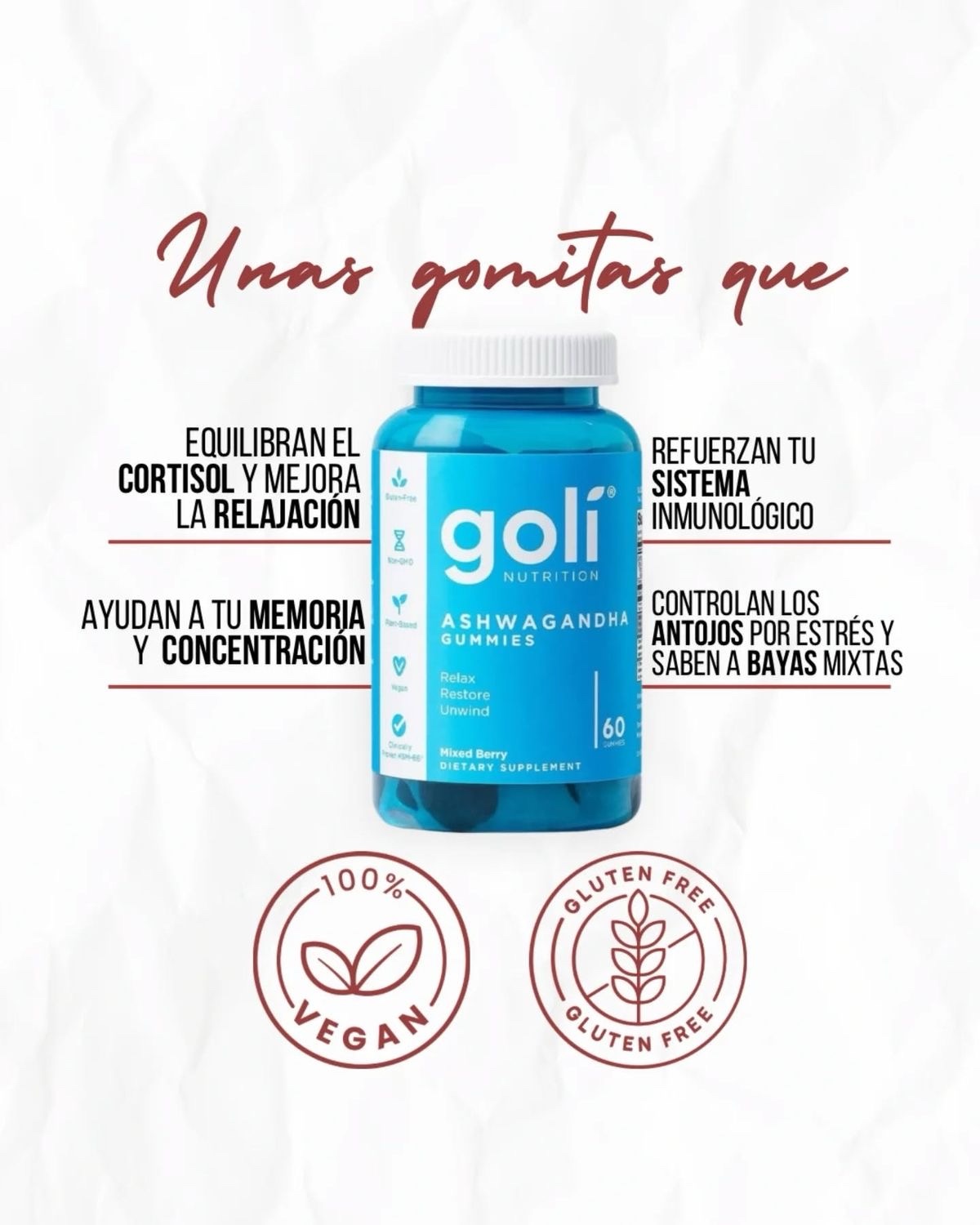 Clínicamente probado ; ingredientes como KSM66 y con extracto de raíz de ashwagandha .